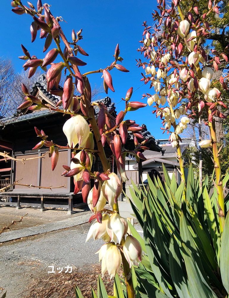 近くの神社の境内に大きな花ビラ胡蝶蘭の花に似たユッカと出会いました💖✨️😍