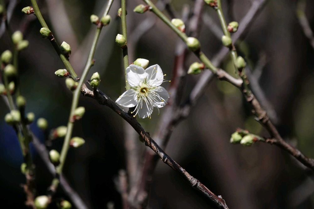 お隣の団地、白梅が一輪咲きました。