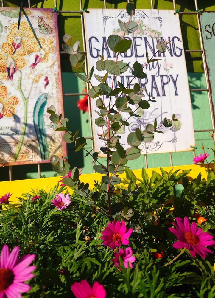 ボンザマーガレット・コスモスピンク🩷ちゃんをかき分けて、ニョキニョキとユーカリグニーちゃんが育っています😄✨️みんな〜仲良くね🎶