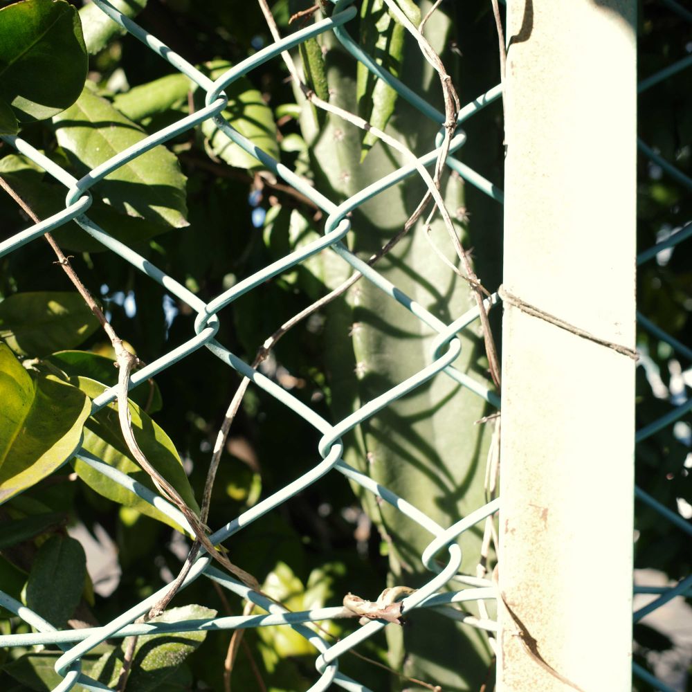 蜜柑の樹が入り口にある会社の前で目を凝らすと、茂る樹の中から柱サボテンが突き抜けていた。喜ぶ。