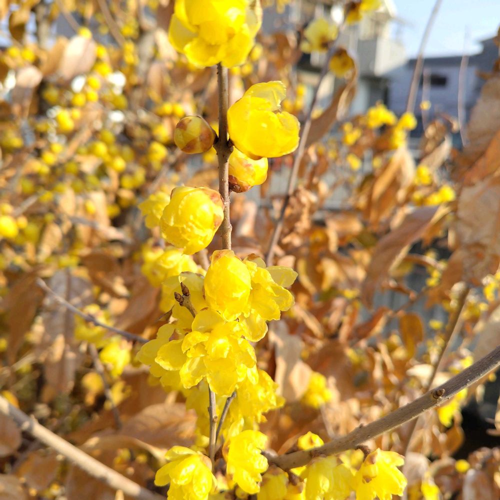 道端にこんなに沢山の蝋梅が咲いているなんて素敵ですねぇ🧡🧡