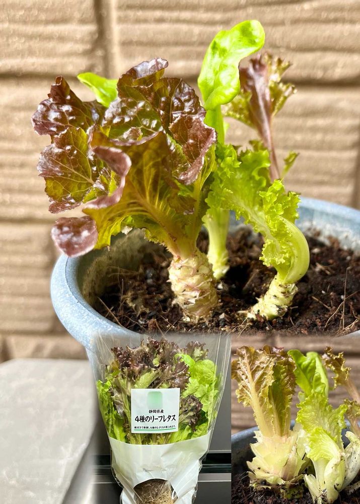 2~3枚芯部分のこして、プランターや畑に植えて育ってきたら外葉から外して使います🥬