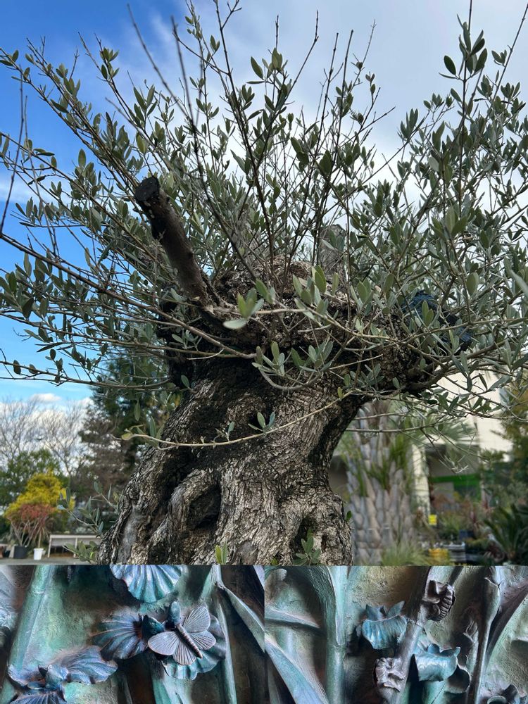 日比谷公園そばの生花店の前にも樹齢150年のオリーブの木があります。やはりこのpicと同じ様な形をしてます🌳🫒
