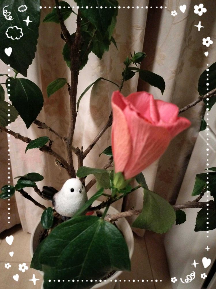 昨日蕾だったハイビスカスが咲きました~カワユスヾ(˙❥˙)ノ💕💕💕