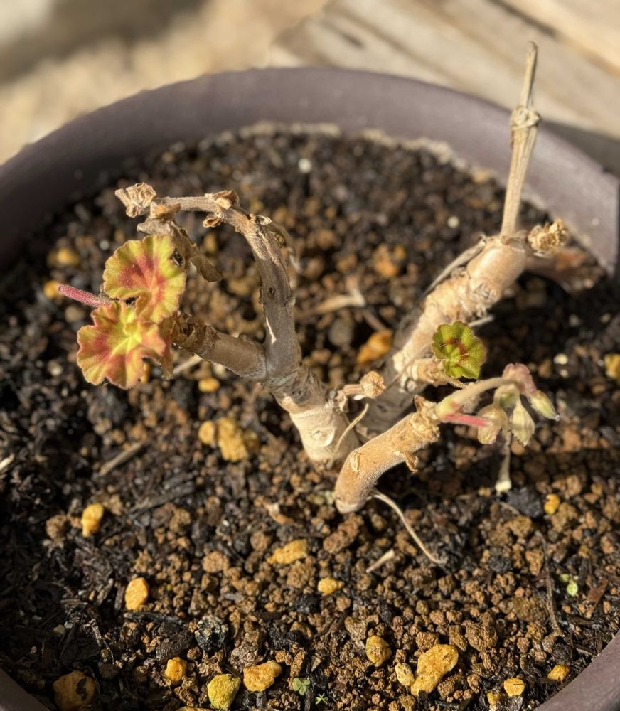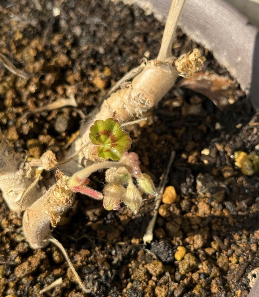 かつてゼラニウムとして可愛いお花を咲かせていたお方なのですが🥹わずかに残る小さな葉っぱに望みをかけます🙏🏻