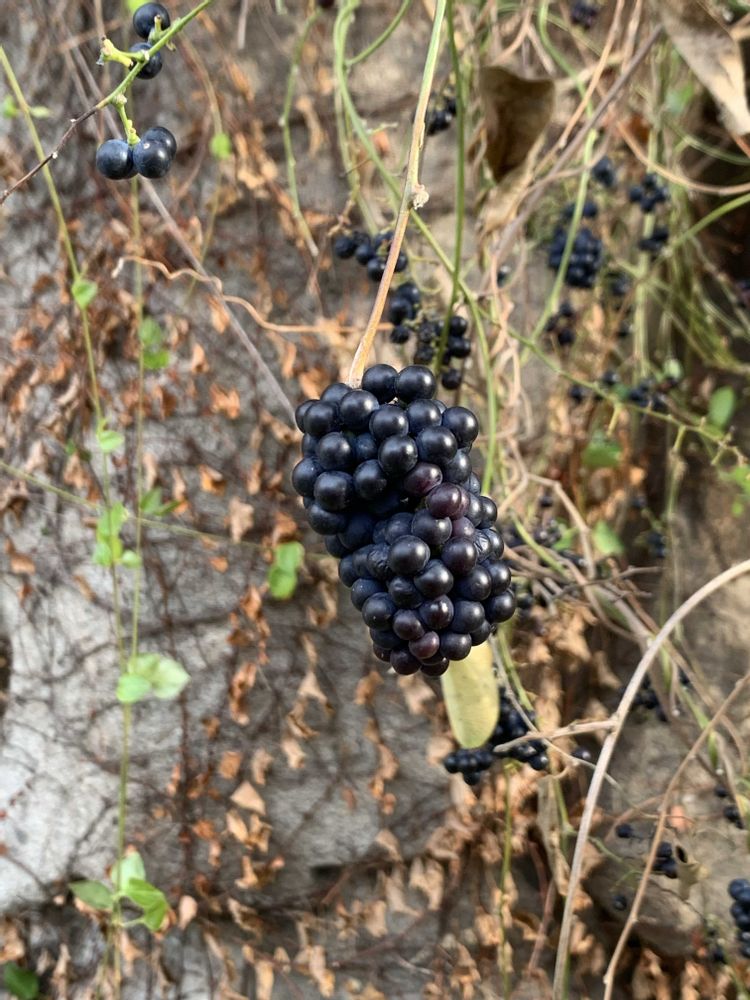 葉っぱが落ちて、目立ってきたアオツヅラフジの実🍇