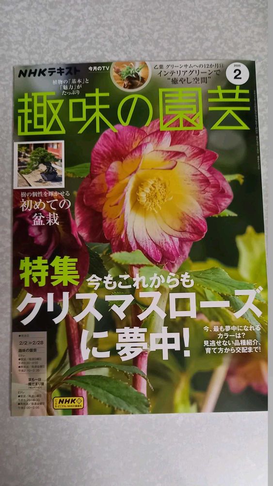 今晩は、私も2月号早速買いましたよ。横山直樹さんが、テレビに出るようです。💕鳥取の花回廊に毎年来られる、クリスマスローズの先生です。楽しみですよかったらテレビも見てね🤭💕2月はクリスマスローズのお花がたくさん見られますね。楽しみです。ちなみにこちらはまだまだです😊