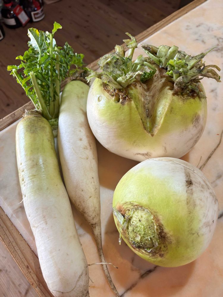 例年は、12月に入ると食べきれないほど届いて居たのに、初めての蕪です。