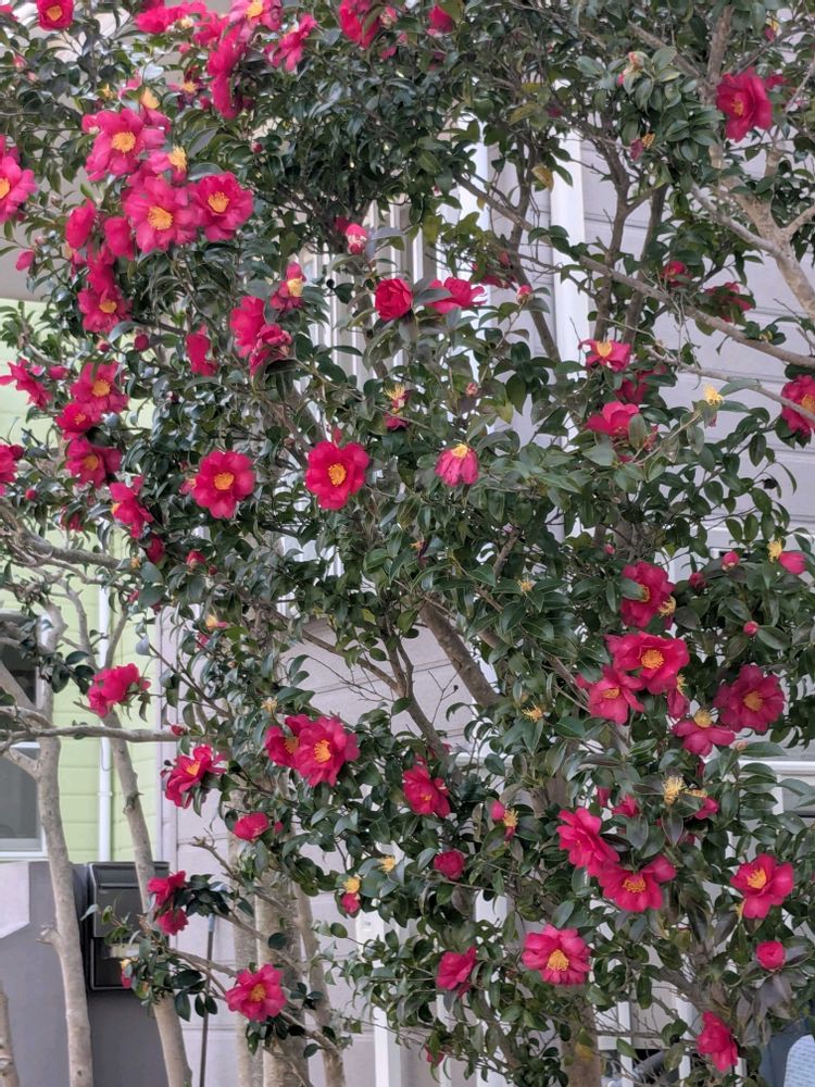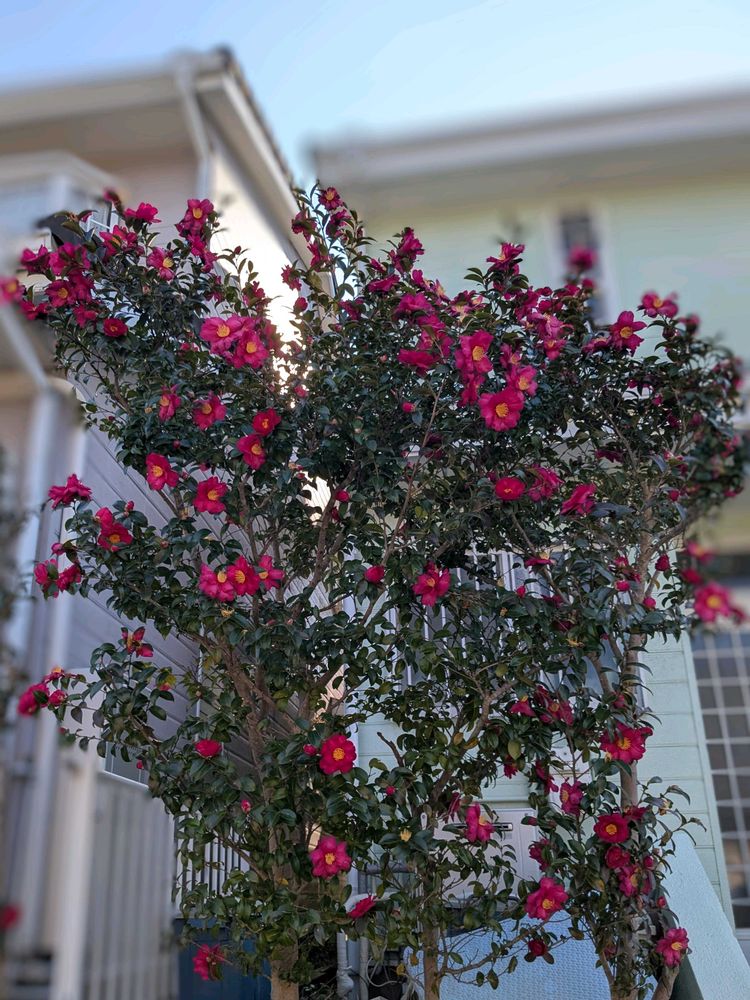 3️⃣4️⃣やっとここまで咲きました。わが家の山茶花
