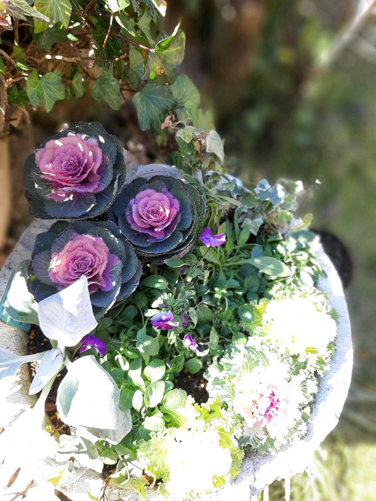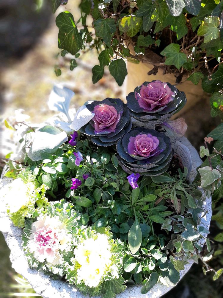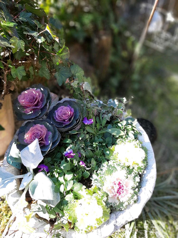 葉牡丹は冬の薔薇みたいで長いこと楽しめるのも嬉しいですね😊
