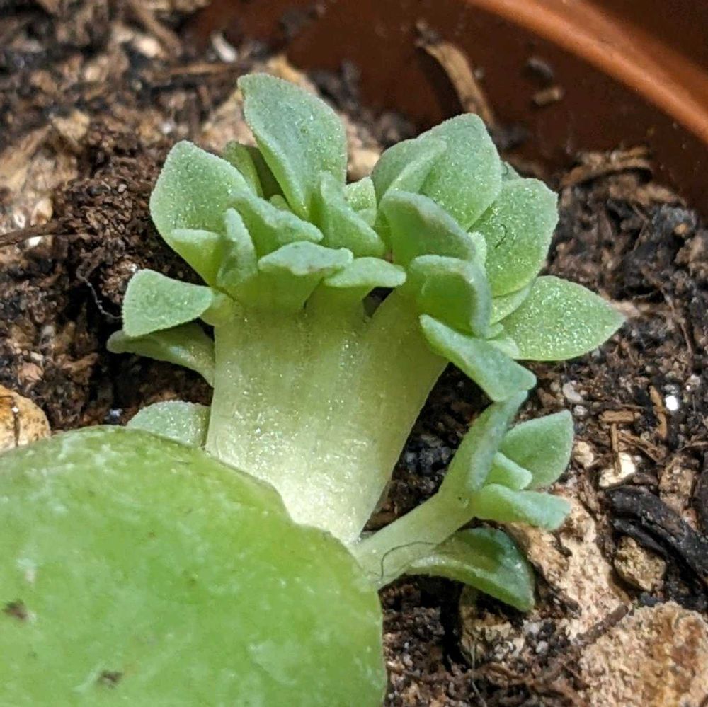 エケベリア・メラコの葉挿し。これは綴化になりそう。