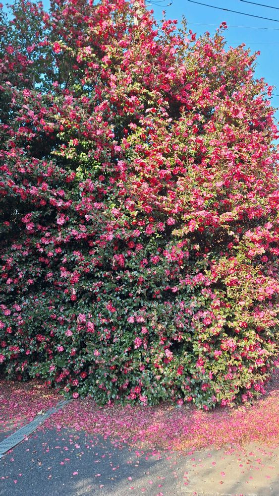 ずいぶん花付きのいいサザンカですね✨