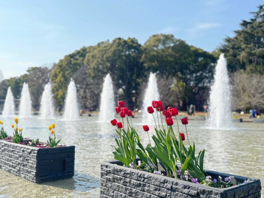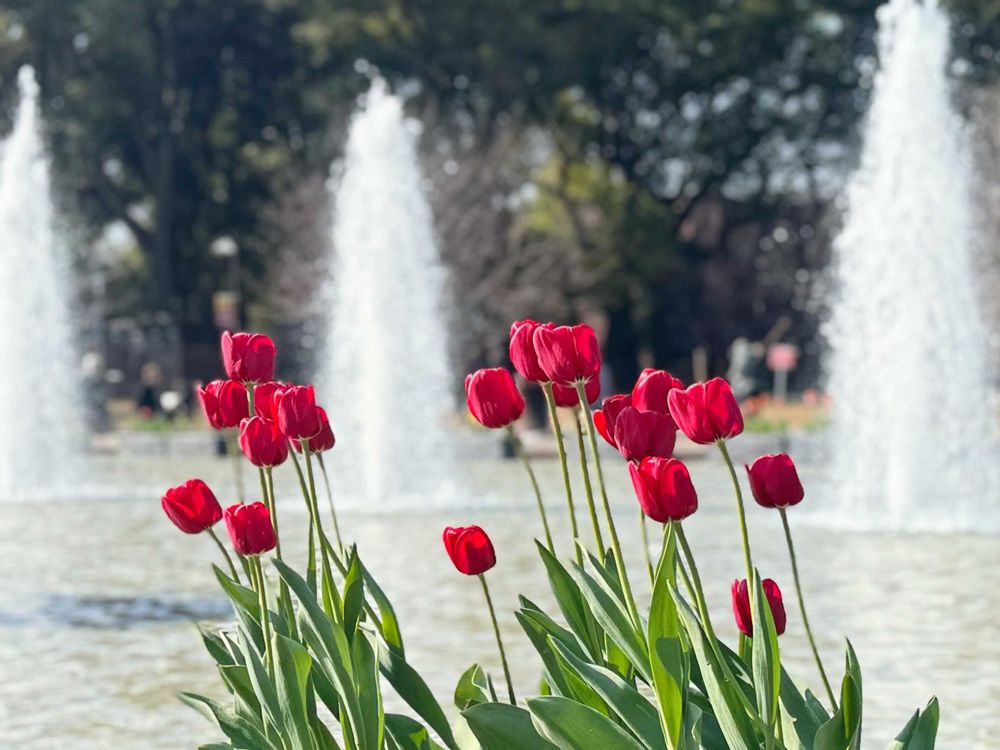 チューリップ🌷が咲くと、ひと足早い春を感じられますね❤ 噴水⛲も気持ち良さそうに感じられますね*.(๓´͈ ˘ `͈๓).*