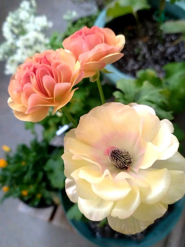 こんばんは🌛ラナンキュラスさん、三種類も育ててるんですか❣️優しい色ですね🥰春を感じられるお花でフリフリの花弁が素敵です😍毎日の癒しですね💕︎