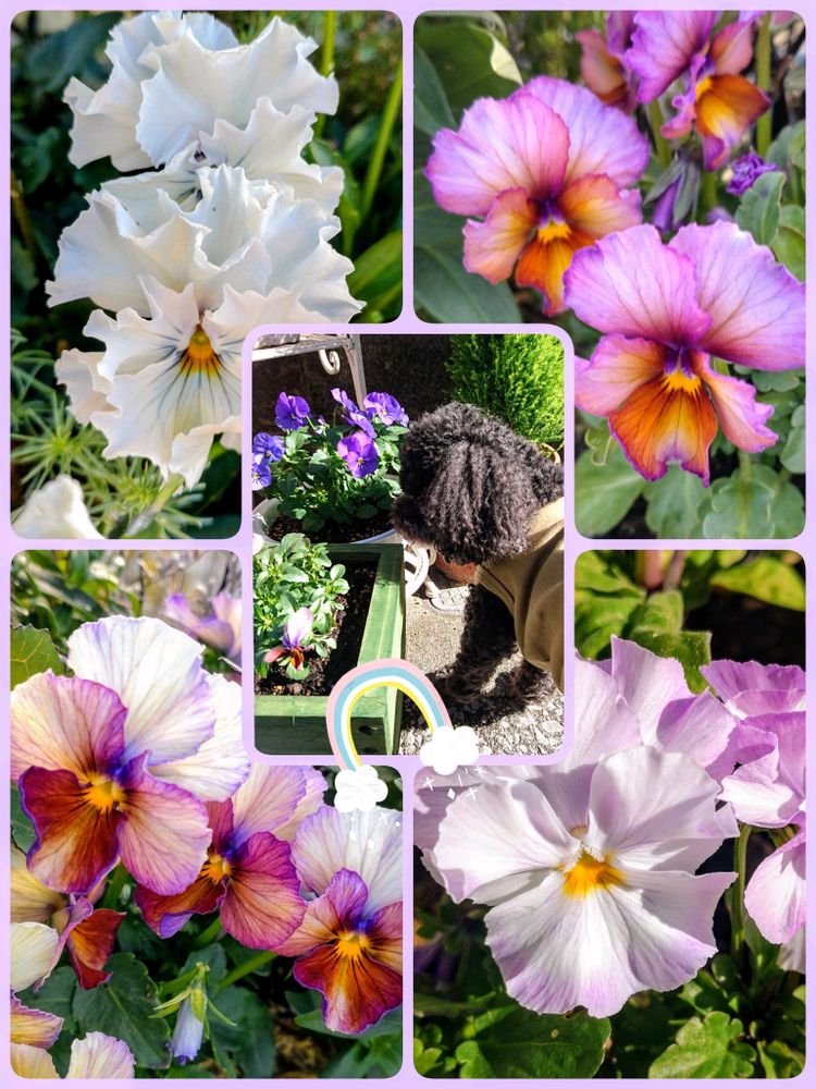 中央のpicはちょうどビオラにハマり始めた2020年1月のエル🐶💕あまりお花には興味がなかったようですが…今の庭を見たらどう思うか聞いてみたい⁉️🏷️虹の日に参加します🌈