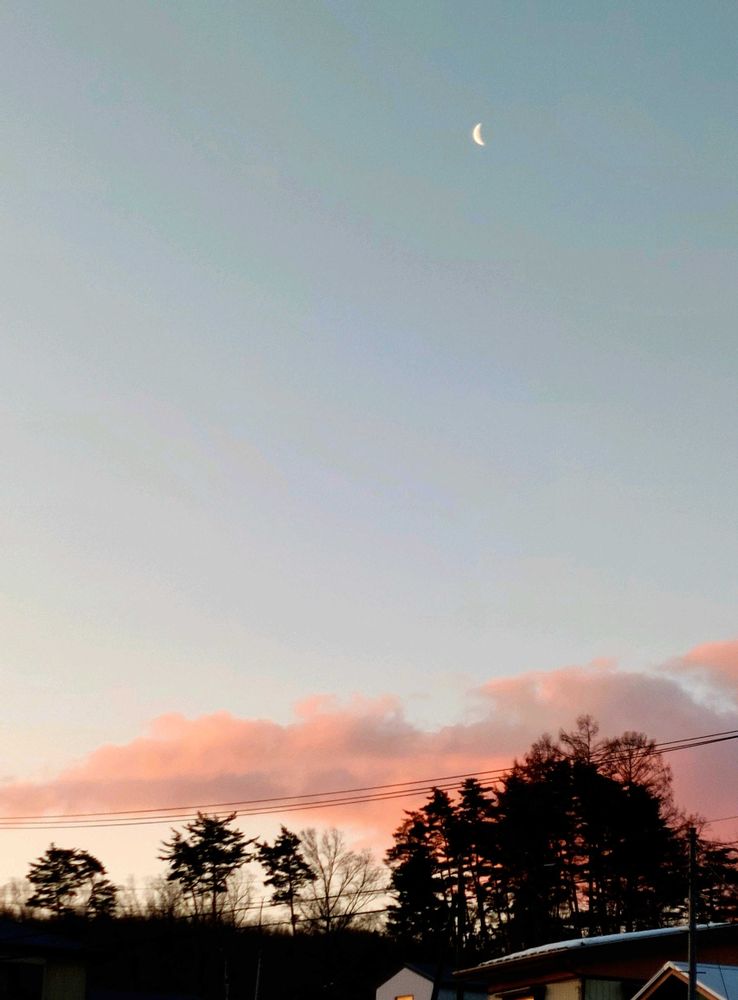⑵今朝は朝焼けと下弦の月が見られました