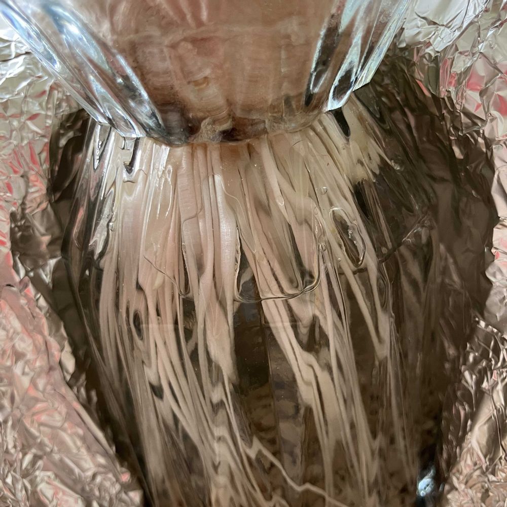アルミホイルを巻いたヒヤシンスが芽も根も伸びて来ました❣️