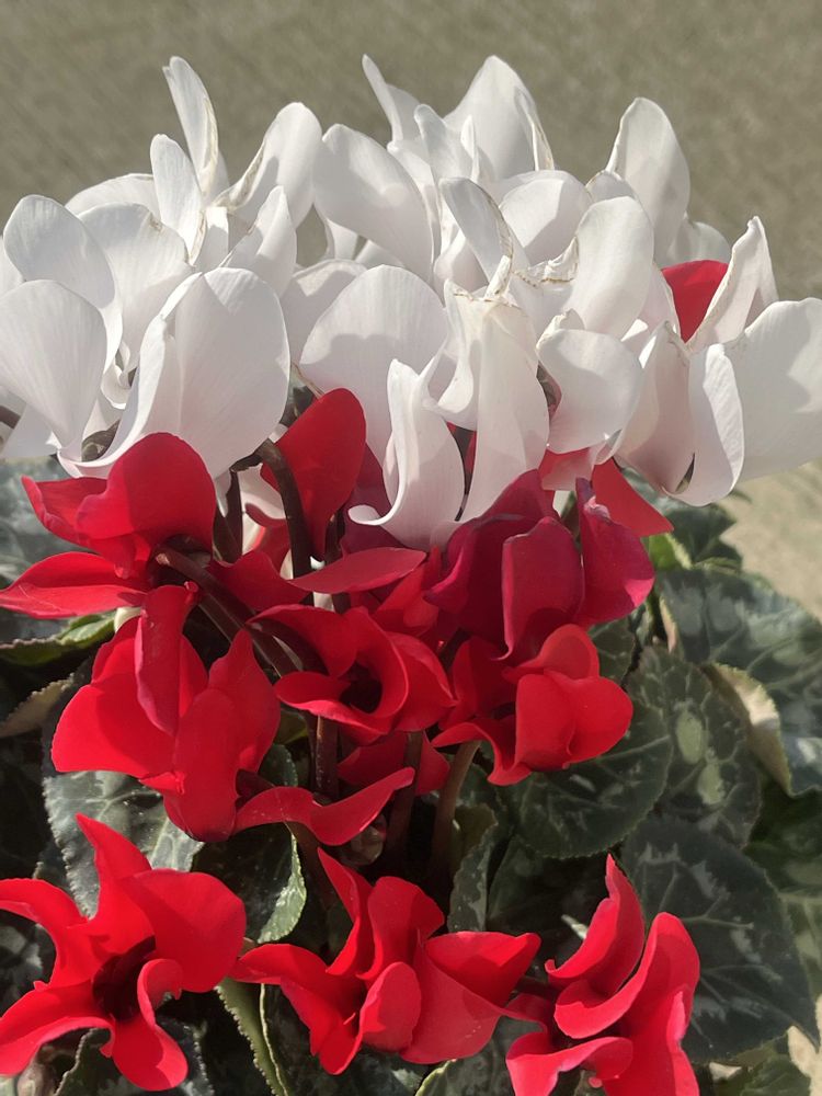 一緒に、まだまだ元気でお花を楽しめる、紅白のシクラメンを購入しました.。.:*♥️🤍