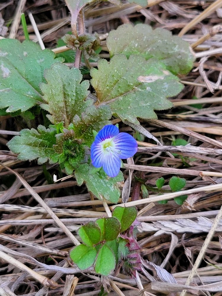 はーい、今日、畑脇で小さな青色を見つけ、しゃがんでよーく見たらフグリちゃんでした💙🎶