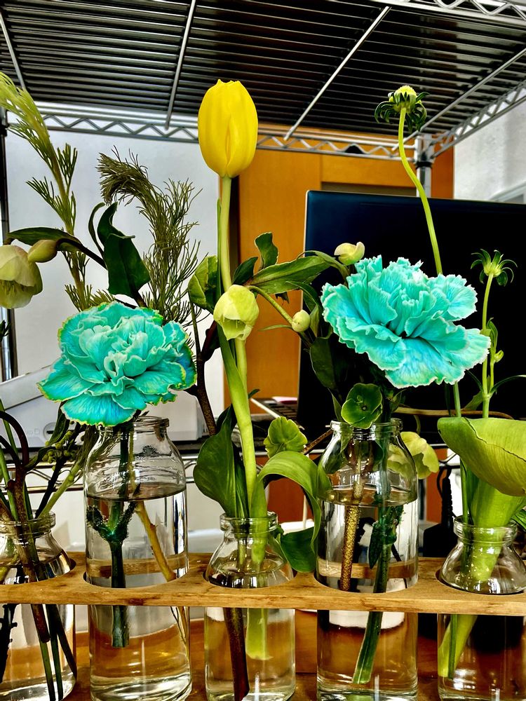 色水のカーネーションですよね🩵🩵素敵✧*。꒰ღ˘◡˘ღ꒱