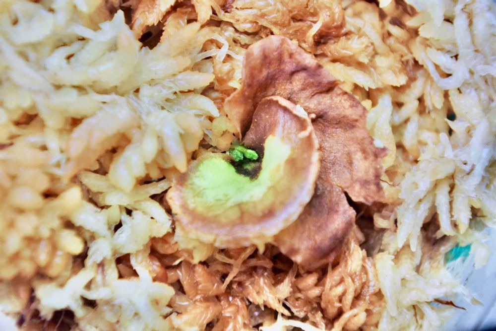 水苔を取り除いてみると、根が全然伸びていないので、即新しい水苔に交換。
