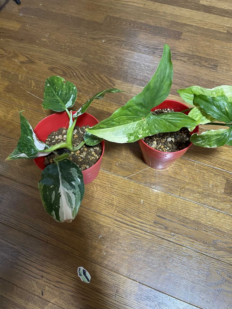 この前お迎えしたホワイトウィザードとシンゴニウム頑張って大きくなれ、の想いと願いを込めて植え替え🪴