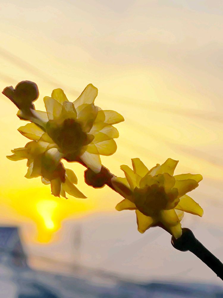 夕陽の色と臘梅の色、どちらも欲張って写したくて苦戦しました(笑)