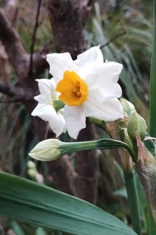 庭の百日紅の木の下で、ニホンズイセンが咲き始めました