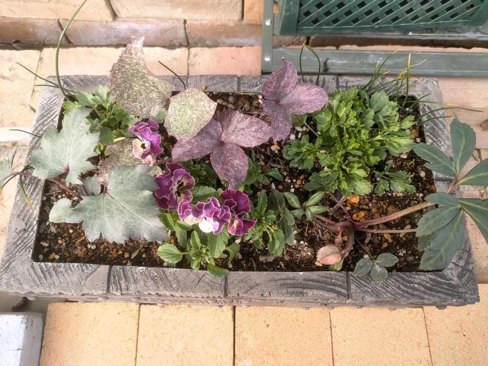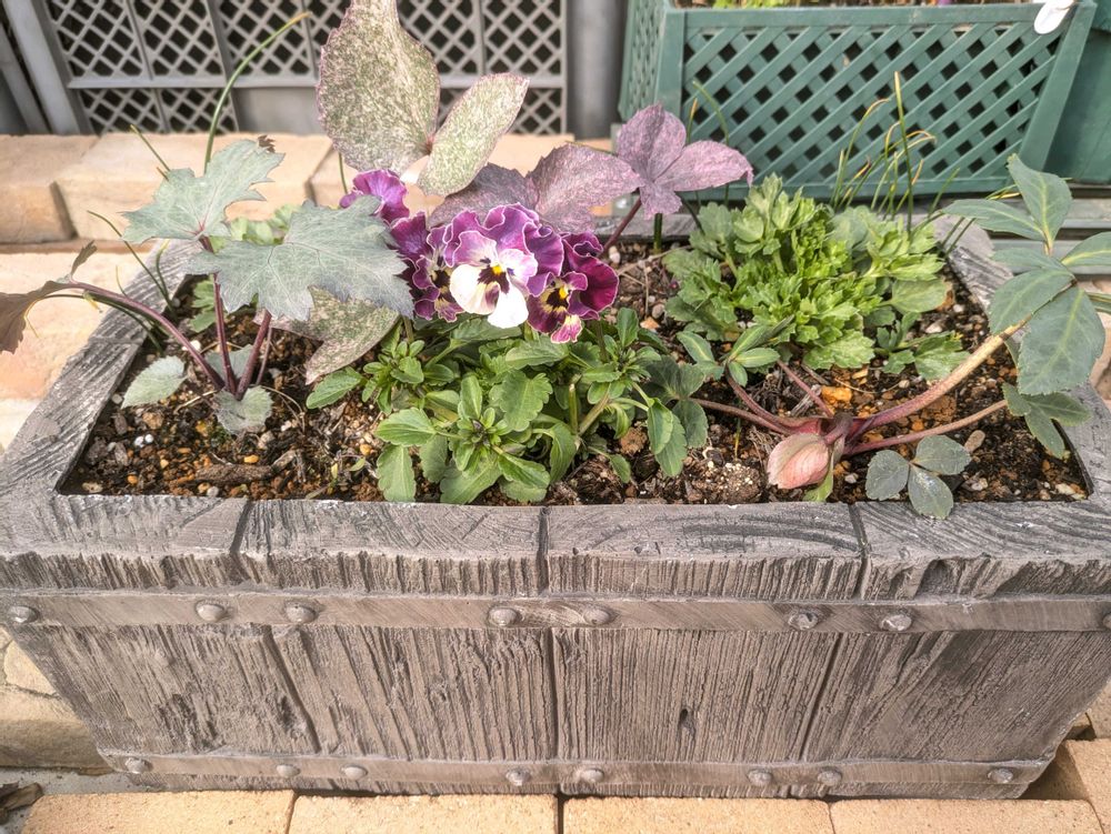 松村ナーセリーカラーリーフのクリスマスローズなどを使った寄せ植え