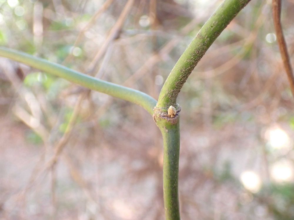 高尾山には、オオバウマノスズクサがいます。実をみつけて、このあたりにいることはわかっていましたが、冬芽を探すことは、なかなかできませんでした。今回、つるが出ているのを、教えていただいて、わかりました。