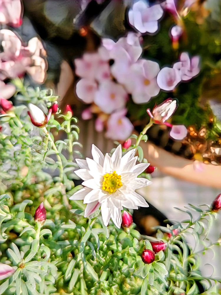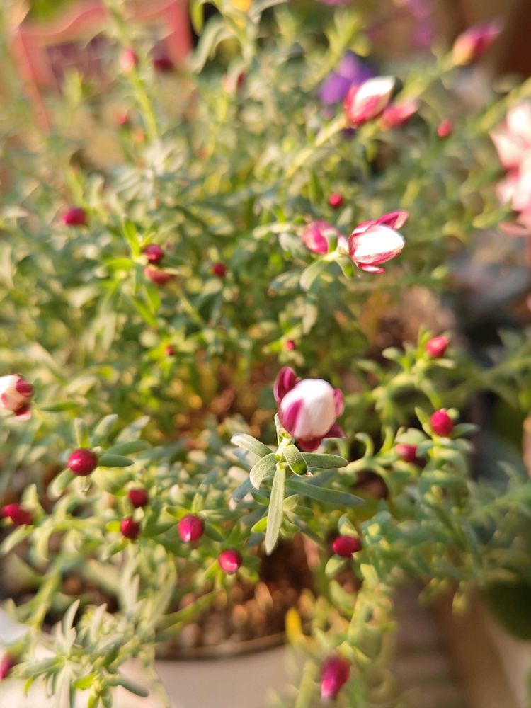 花弁の先が尖ってる。他は花かんざしと良く似てます。赤い小さな蕾が一杯💕