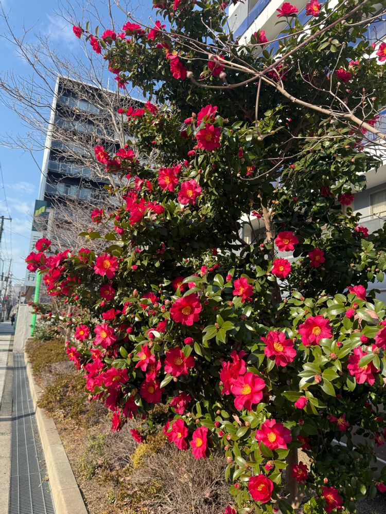 わぁ♡サザンカ、真っ赤で埋め尽くされてますね〜❤❤❤