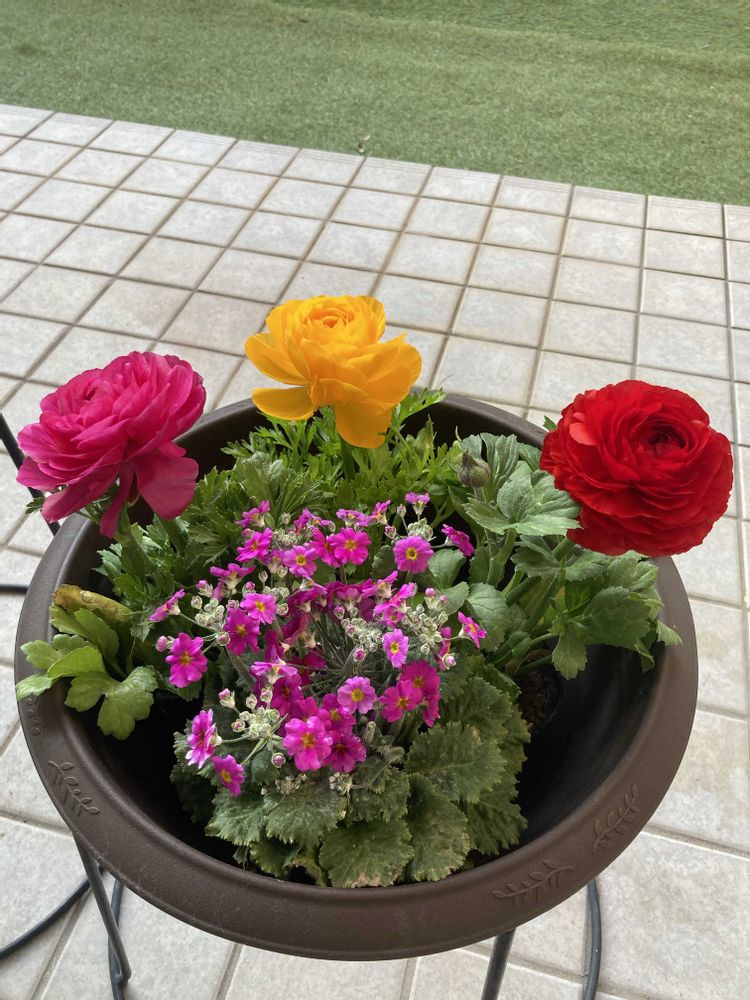 おはようございます😃ラナンキュラスとドラキュラは無関係です🧛&桜草とバック ロウバイ🚗(オーライ)💦🤣🚀
