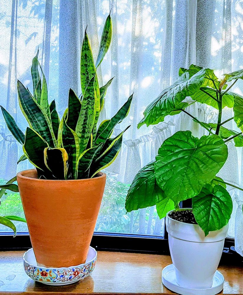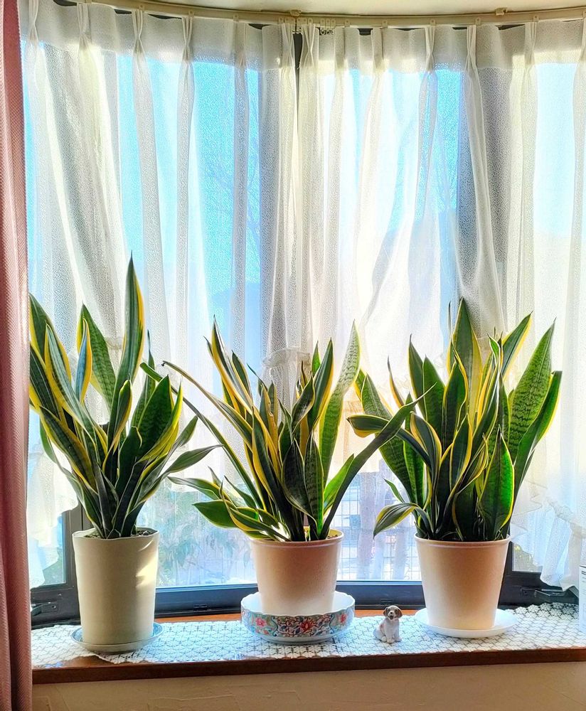 サンスベリアの緑とその隣の緑がとても鮮やかですね。うちのサンスベリアさん、もう10年以上育てていたのにちょっと失敗していなくなってしまいました😢