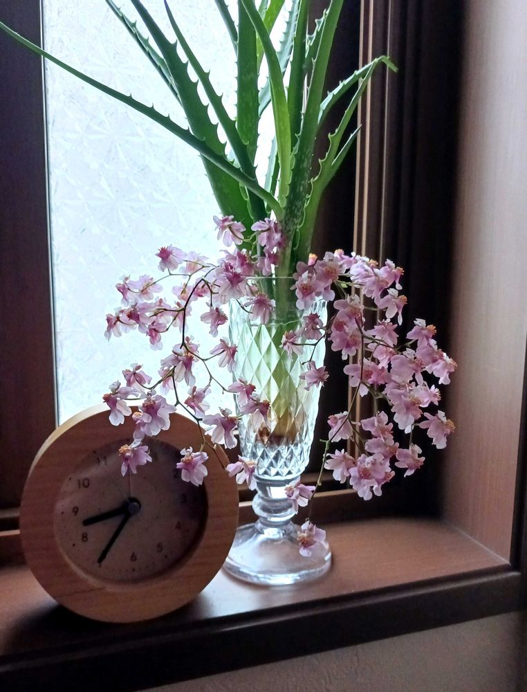 「花がパラパラ散り始めたら切る」とどこかで読んだけど、最後は切り花で楽しむことに。