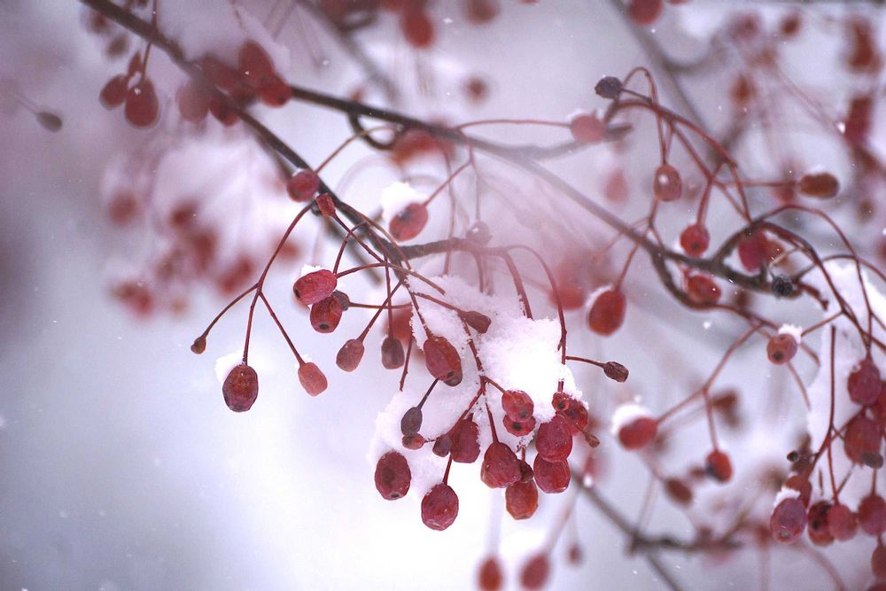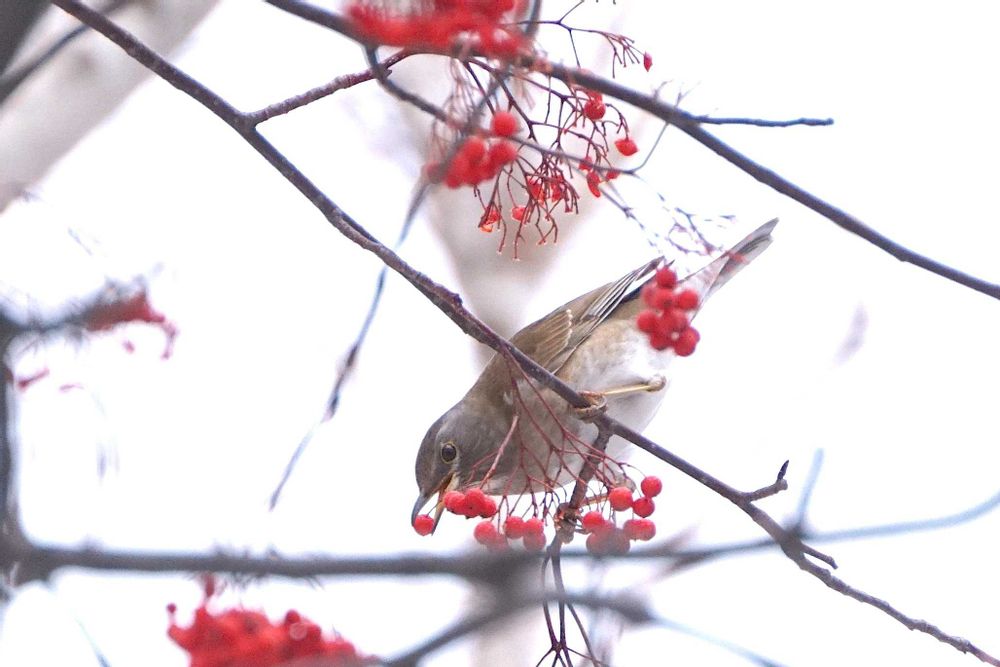 色味の無い北の冬に彩りを添えるアズキナシの赤い実🔴✨