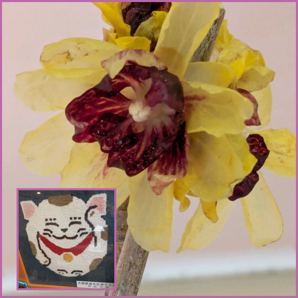 先程立寄った、大分県水分パーキングで出逢ったロウバイをコラボしました。