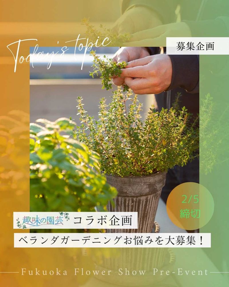 寄せられた声を生かし、福岡らしいステキなベランダガーデンを、「Fukuoka Flower Show Pre-Event」で提案したいと考えています。