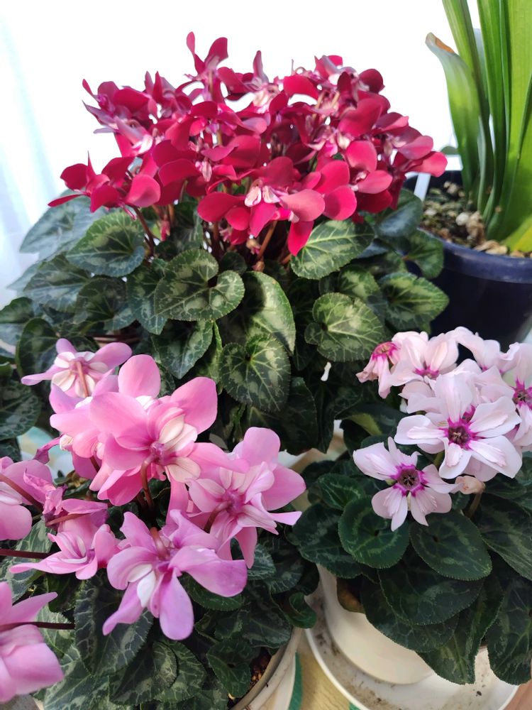 我が家の過保護シクラメン達。室内窓辺の1等席💕