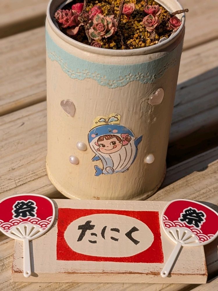 ②ペコちゃんのリメ缶に入ってるアトランティスさん❣️ピンク💗🩷のバラ🌹のようにいつみても可愛い💕