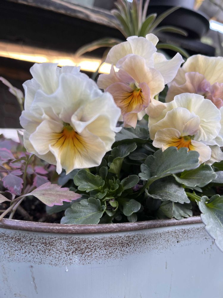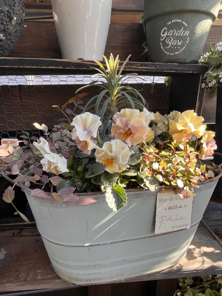 欲しかったピンクのセリを見つけたので、それに合わせて淡い色の寄せ植え作ってみました🥰