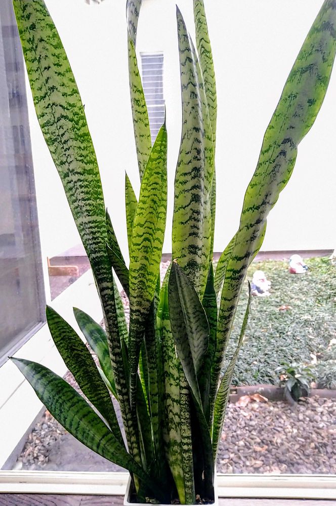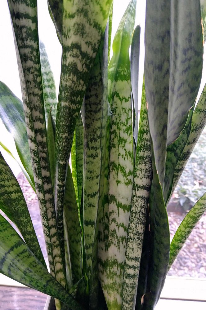 職場でお世話をしている葉の虎模様が美しいサンスベリアです✨💚🤍✨🤗