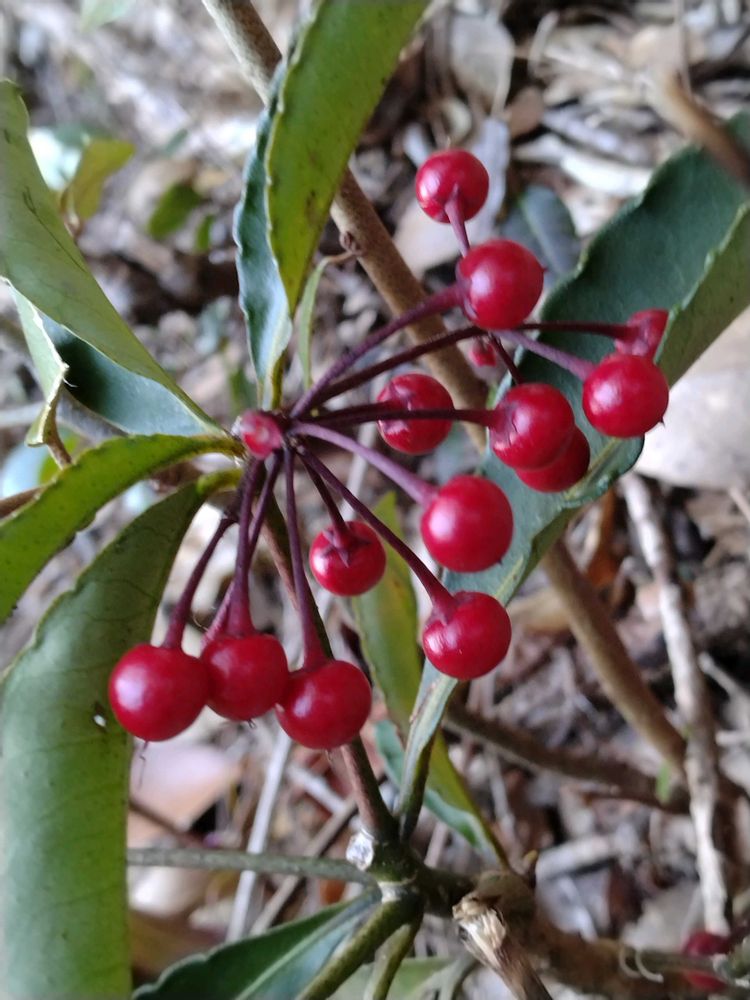 久しぶりの裏山にて。紅い実が存在感を放っています。