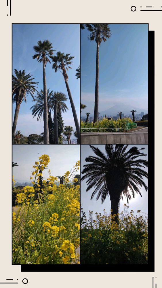 お天気良すぎて、桜島はかすんでしまってはっきり見えなかったけど、菜の花がきれいでした。
