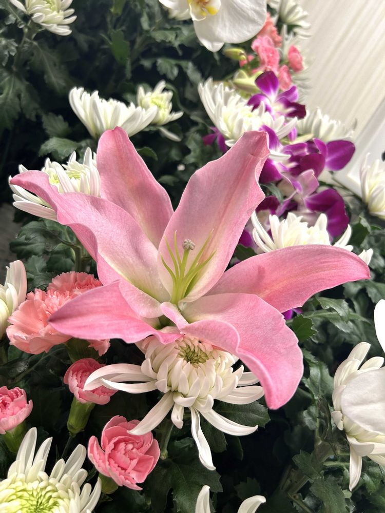 ピンクの百合が優しいお義父様の心を表すようですね