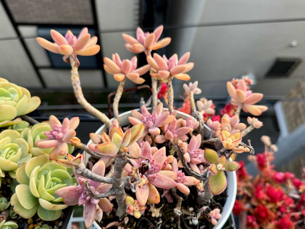 日当り悪いと徒長すると聞いて、我が家はお日様ガンガンの雨ざらしなんですけど、親株の根元の子株も秋から増えてきました🌿