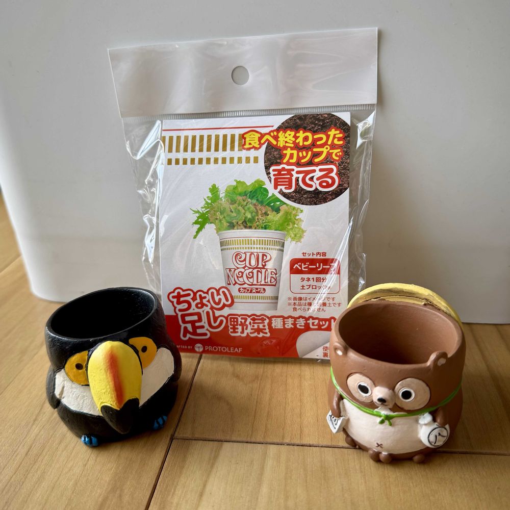 別の花屋さんで見つけた南国の鳥とタヌキのミニポット🐧