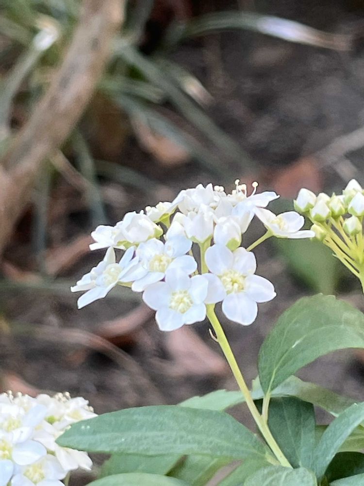 で、枯葉も落ちた境内でしたが、ほんのひと株のコデマリを足元に発見!✌️😊