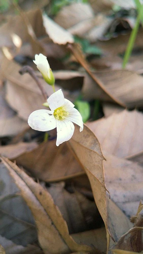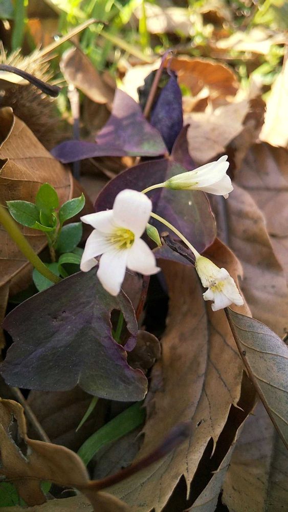 どこからやって来たのか白いオキザリスの花が咲いていました。