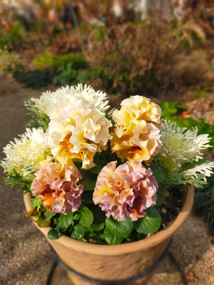 冬でも寄せ植えにすると、お花が楽しめるので、ホント幸せを感じます✨